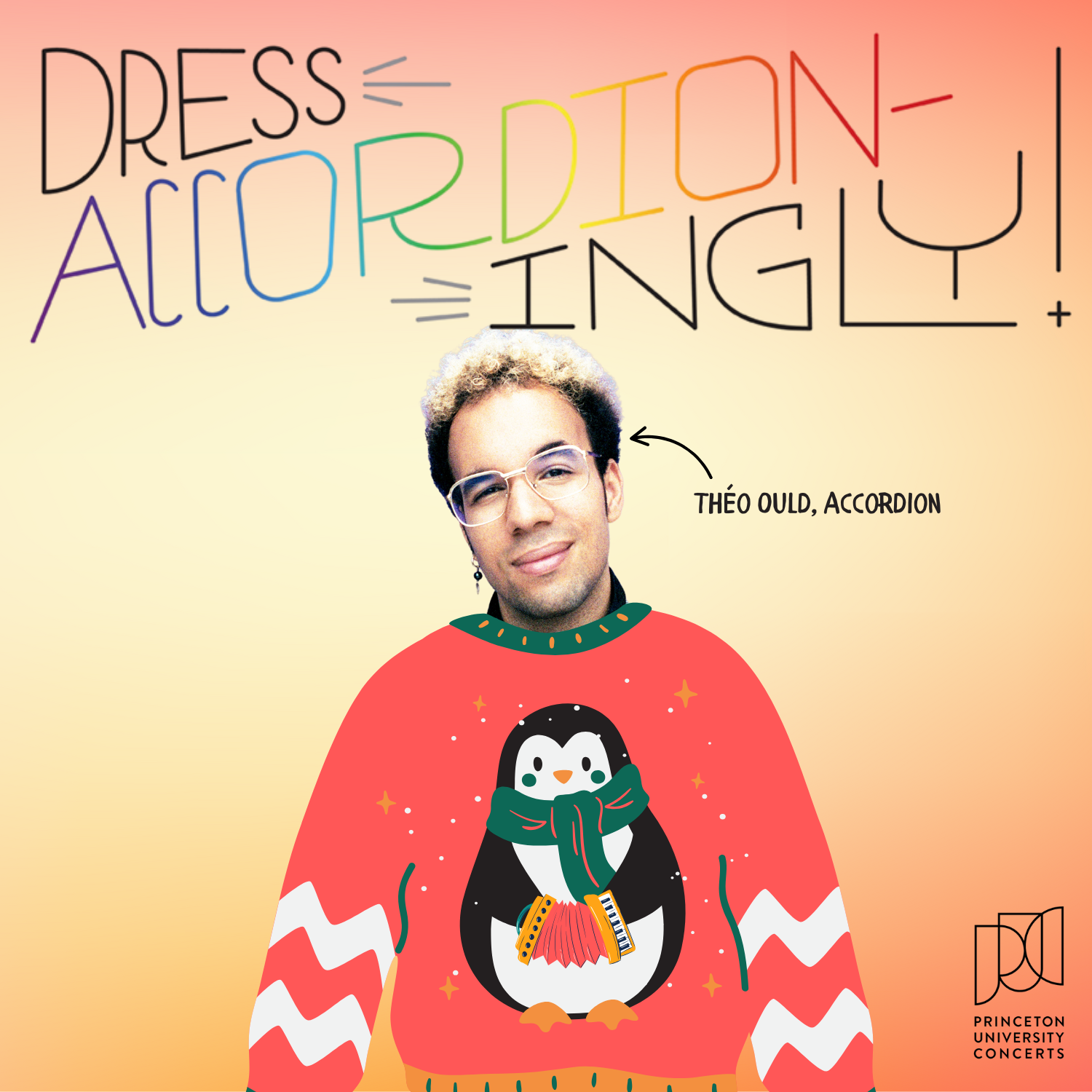 B-sharp, B-natural, Be YOU! Join our festive Ugly Sweater Party for beautiful members of the LGBTQIA+ community and allies—with snacks, games, and a concert by accordionist Théo Ould. Dress accordion-ingly for a chance a prize in the ugly sweater contest!